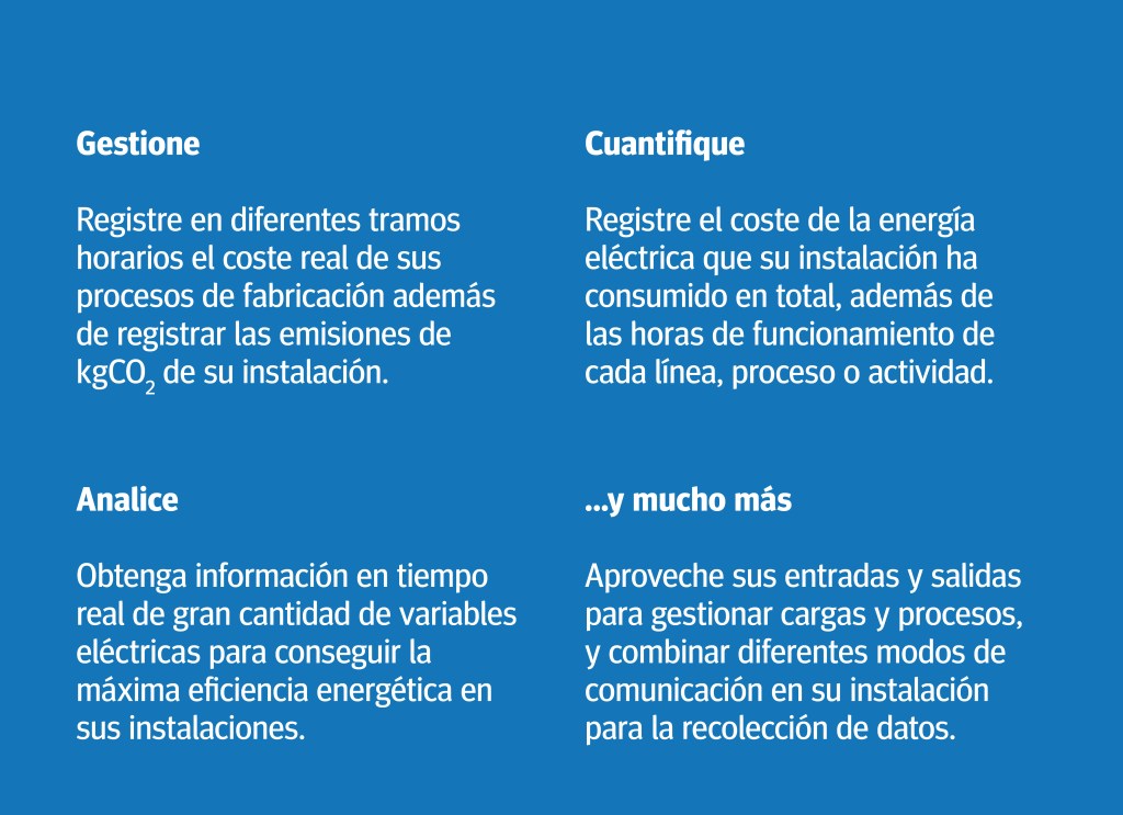 La instalación de analizadores de redes nos permite descubrir cómo, dónde, cuándo y cuánta energía estamos consumiendo en nuestra instalación. Una vez conectados al software de gestión, podremos monitorizar la evolución del consumo en el tiempo. De esta manera, visualizaremos las tendencias de nuestro consumo para detectar puntos de mejora, aplicar medidas correctivas, evaluar los progresos y descubrir rápidamente cualquier consumo anómalo o ineficiente.