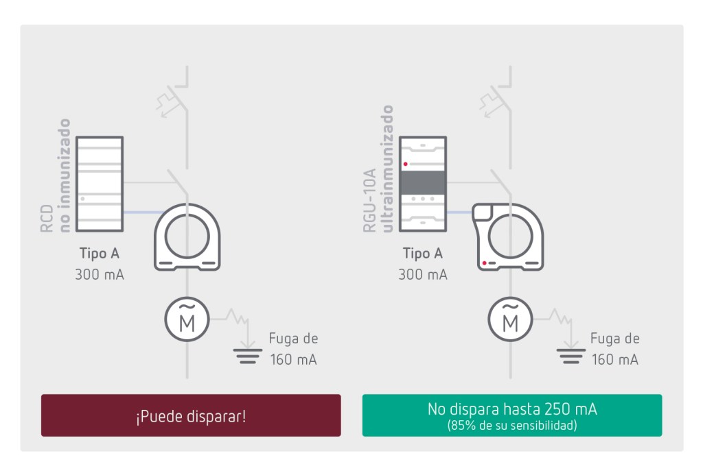 Por este motivo. los diferenciales deben estar preparados para evitar disparos indeseados, causados por el funcionamiento normal de las cargas, incluso para descartar otros fenómenos transitorios que se producen en la conexión o desconexión de las cargas.