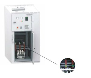 Termografía en línea sin contacto de partes activas con la barra. El sensor de tipo tubular se coloca a distancia, siendo indicado para media y alta tensión y el sensor BT se fija a la barra, pero sólo está en contacto la caja de plástico de policarbonato resistente a 200ºC. el sensor de medición no está en contacto, midiendo también por infrarrojos radiados. los sensores son alimentados por la red eléctrica.